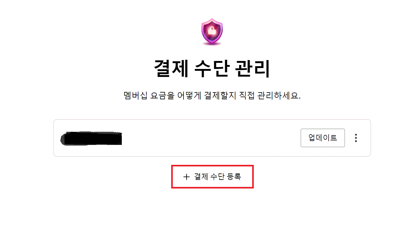 - 기존 결제 카드는 업데이트 옆 점 3개를 눌러 삭제 버튼을 클릭해주세요.