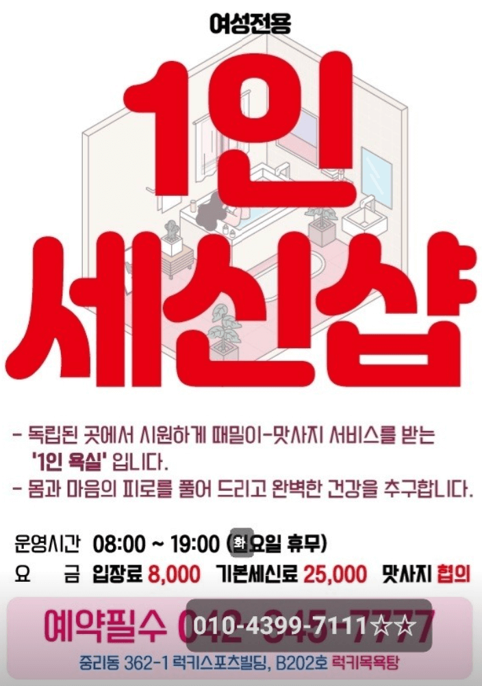 최근 대전 지역을 중심으로 ‘몸테크’에 대한 관심이 높아지면서, 세신샵에 대한 수요도 자연스럽게 증가하고 있습니다. 전통적인 때밀이 방식에서 벗어나, 아로마 테라피, 스톤 마사지, 피부 관리까지 결합된 프리미엄 세신 코스도 등장했죠. 특히 청결과 프라이빗한 공간을 강조하는 매장이 늘면서 2030 여성 고객층에서도 긍정적인 반응이 많습니다.