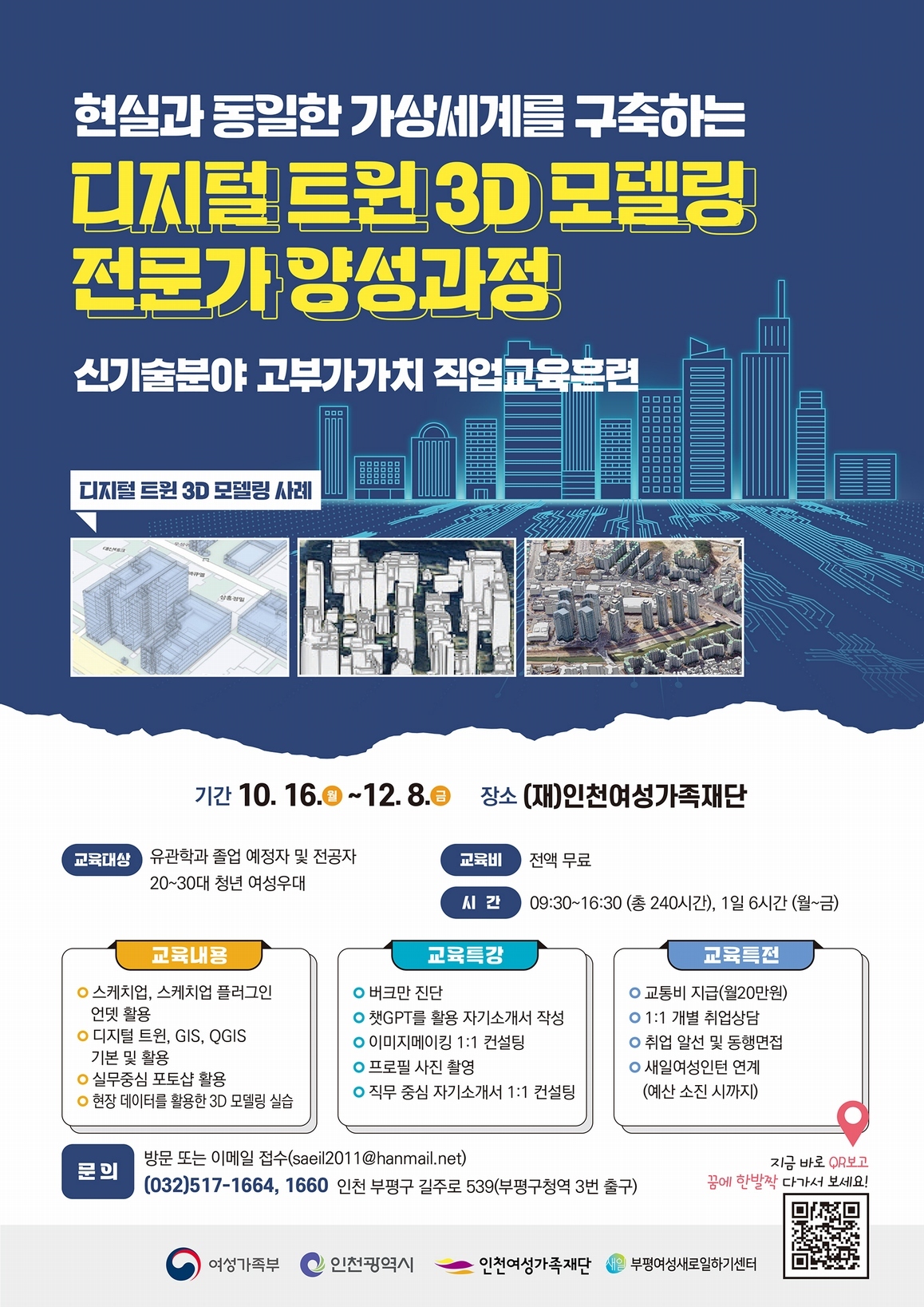 안녕하세요 오늘은 부평여성 새로 일하기 센터에서 여성가족부지원, 신기술 분야 훈련으로