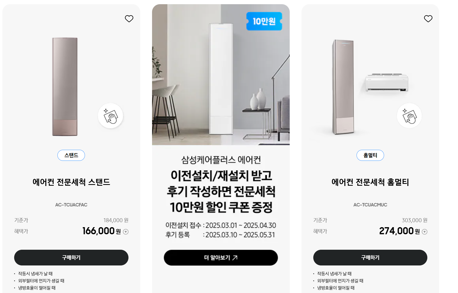2. 삼성 에어컨 청소 가격 및 서비스 종류
