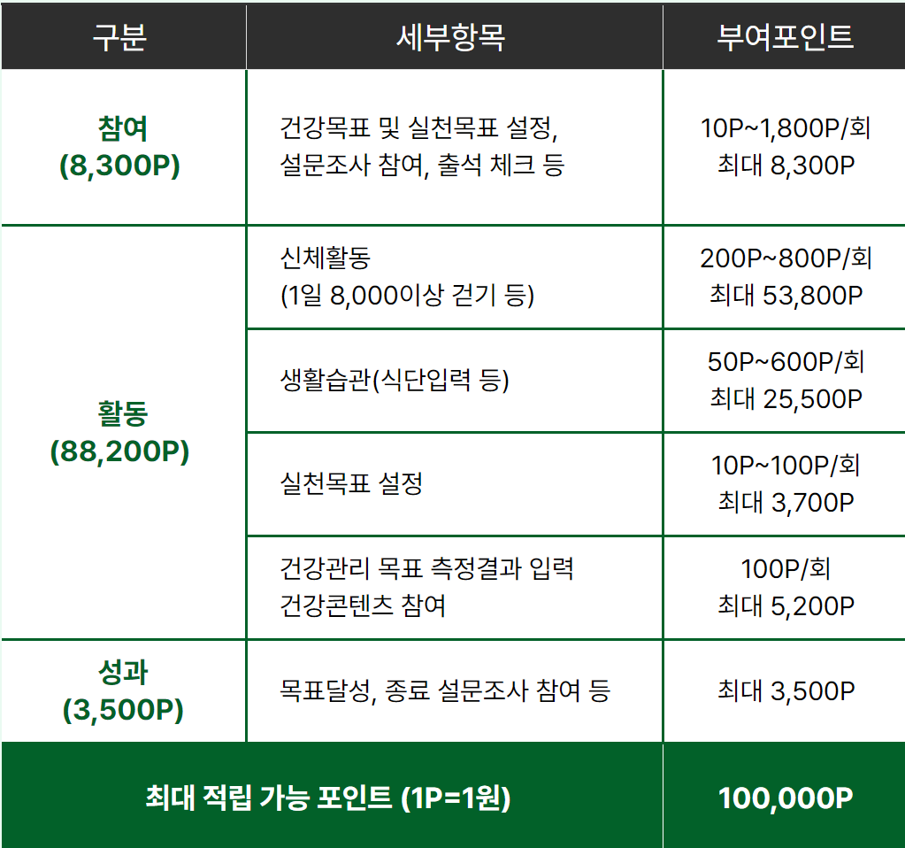 걷기만 하면 현금처럼 사용할 수 있는 최대 10만 포인트도 받을수 있다고 합니다! 상시모집이니 하루라도 더 빨리 혜택 받아보세요!