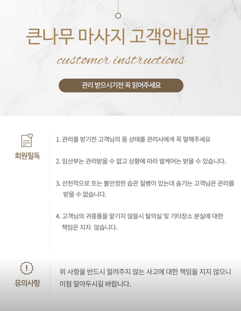 마사지샵을 고를 때는 단순히 가격만 보지 마시고, 아래 항목들을 꼭 확인하세요.