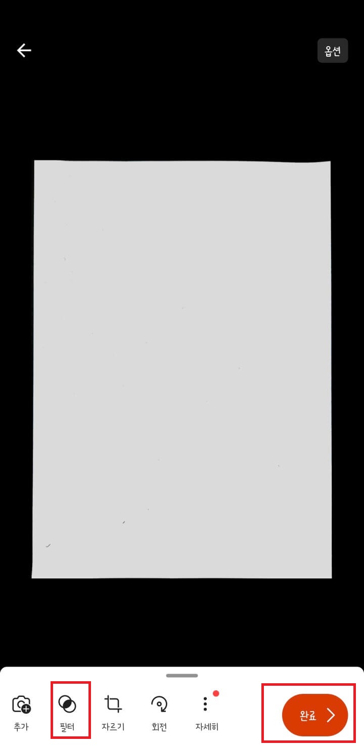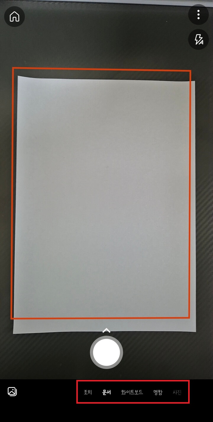 빨간색 사각형이 자동으로 문서 테두리를 잡아줍니다. 최대한 빨간 테두리에 맞춰주세요.
