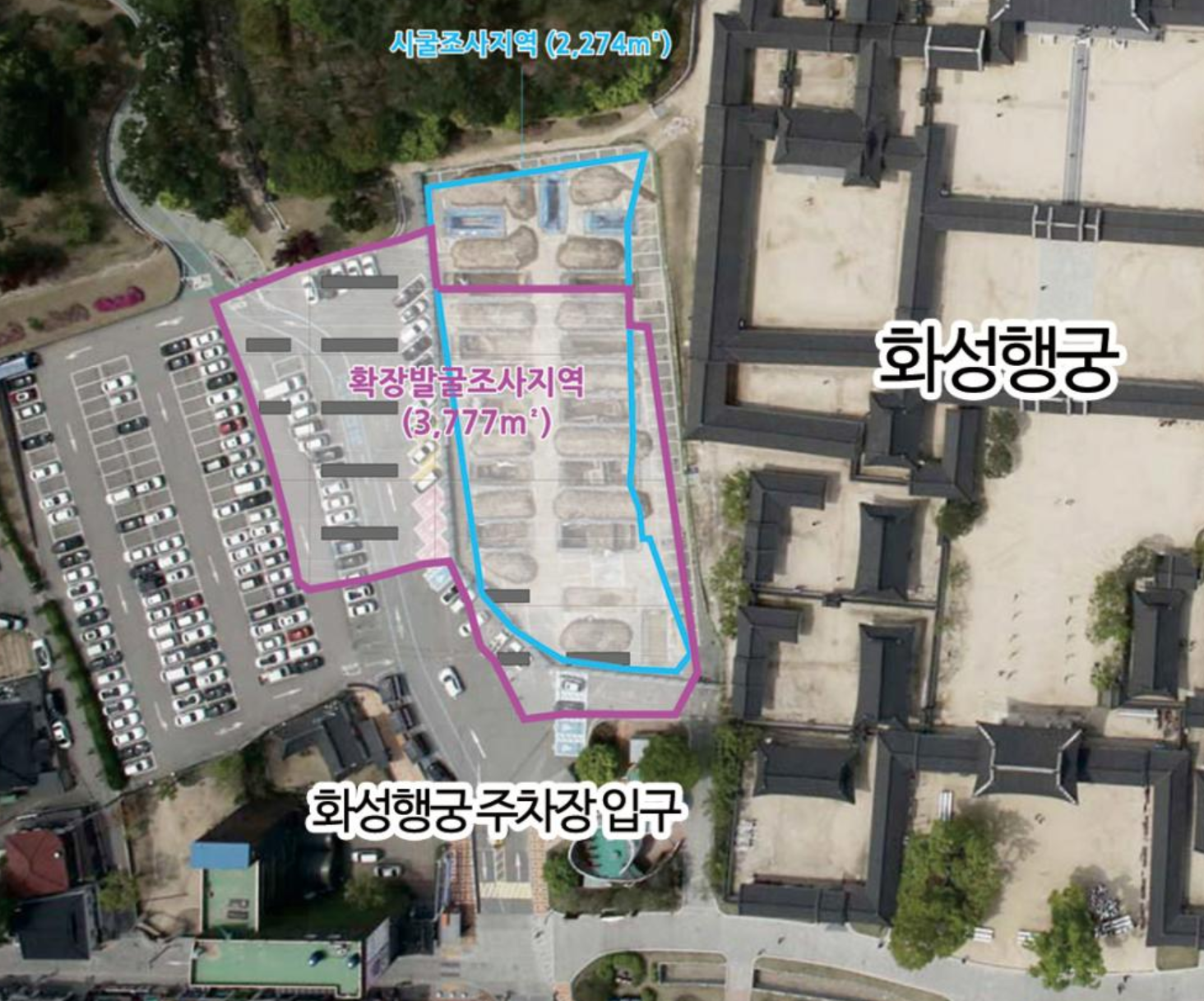- 화성행궁 2단계 복원사업(우화관 일대 발굴조사)으로 인하여 주차장 일부구역 사용이 불가합니다.