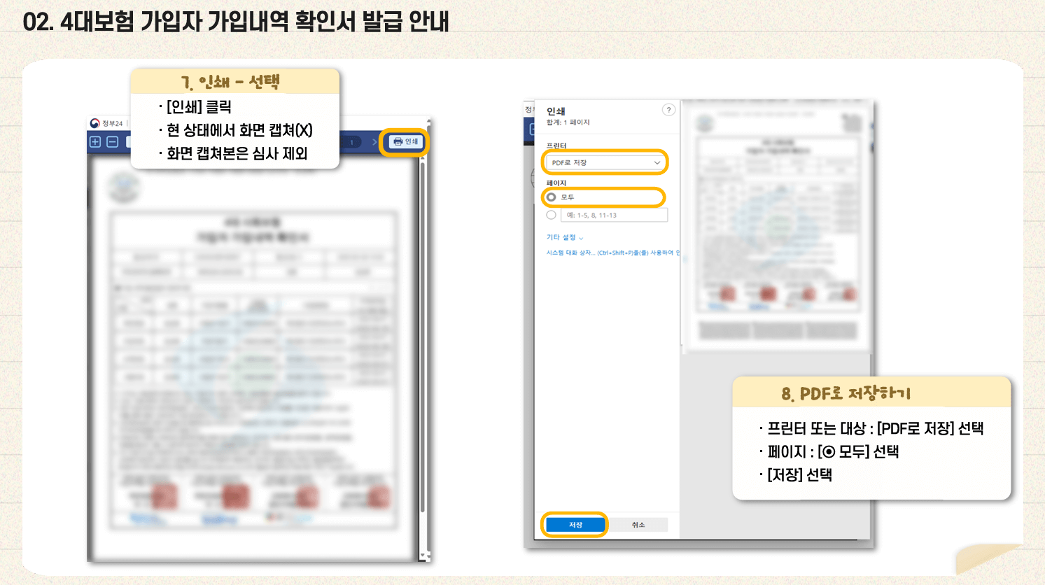 - 국민건강보험공단: 건강보험·장기요양 확인 가능