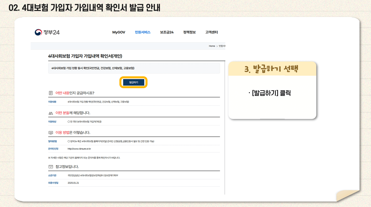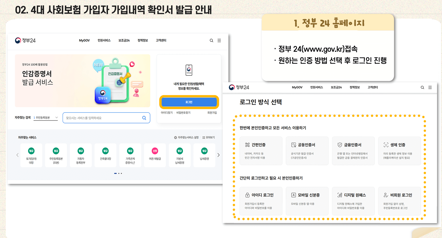 - 모바일 앱으로도 일부 발급 가능 (예: 국민연금 앱)