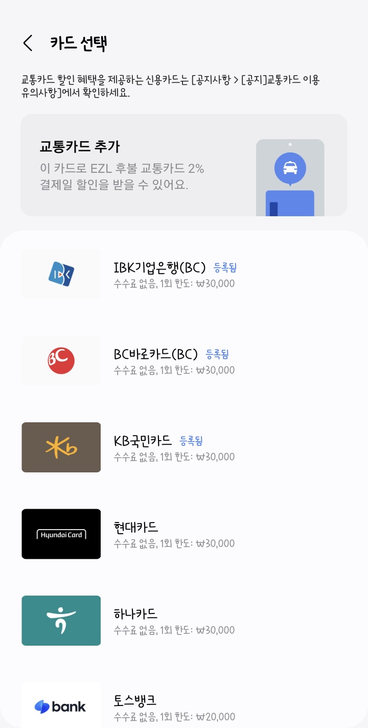 기존 이용 카드가 없으실 경우 아래 화면으로 바로 이동해 주세요.