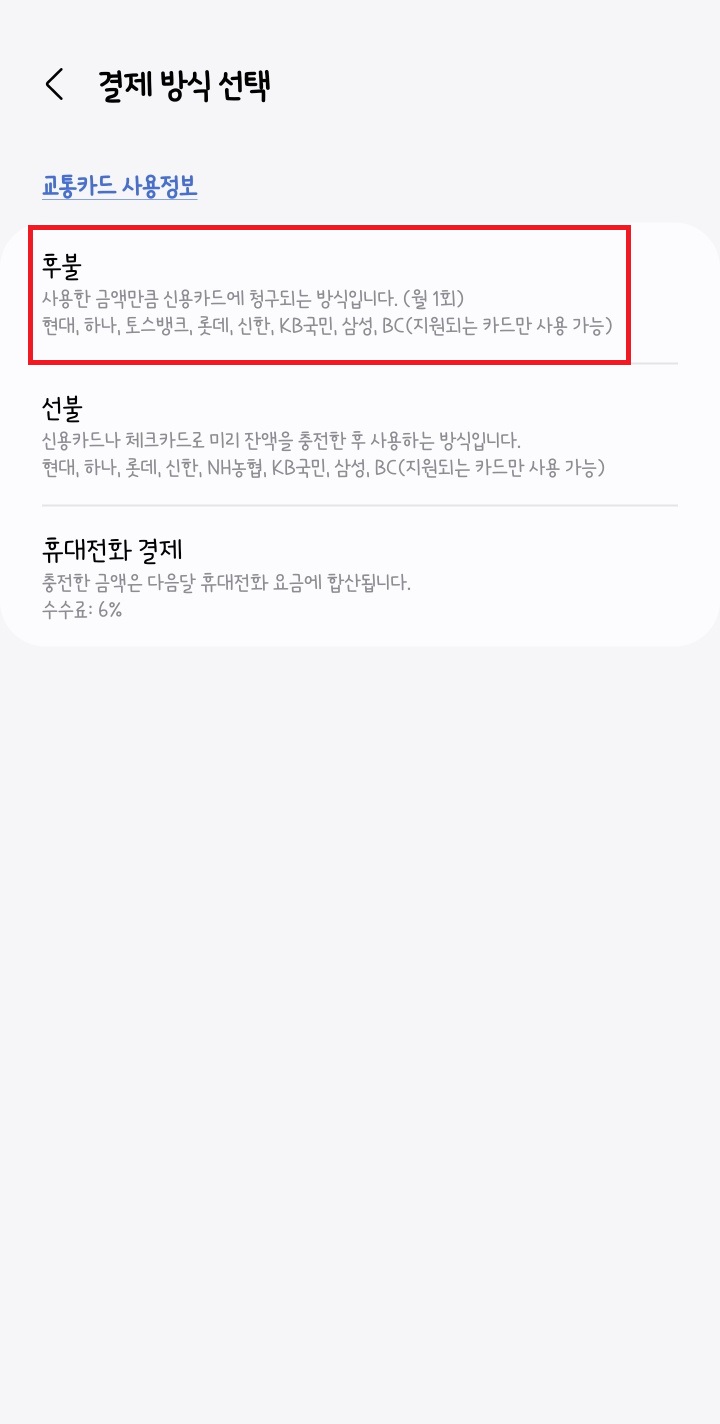 - 자신의 교통카드에 맞는 어플을 선택해 주세요.